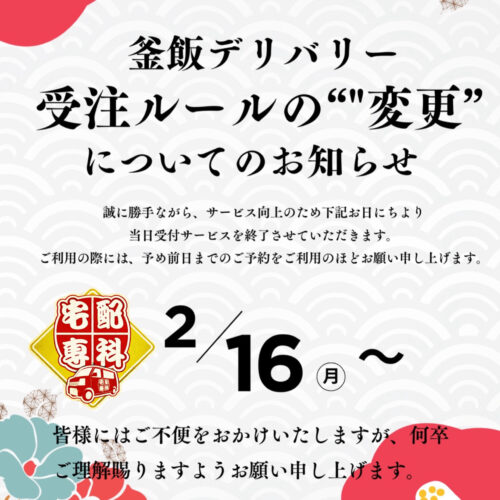 ⚠️【重要】釜めしデリバリー受注ルール変更のお知らせ