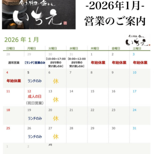 *2026年1月営業に関しまして*