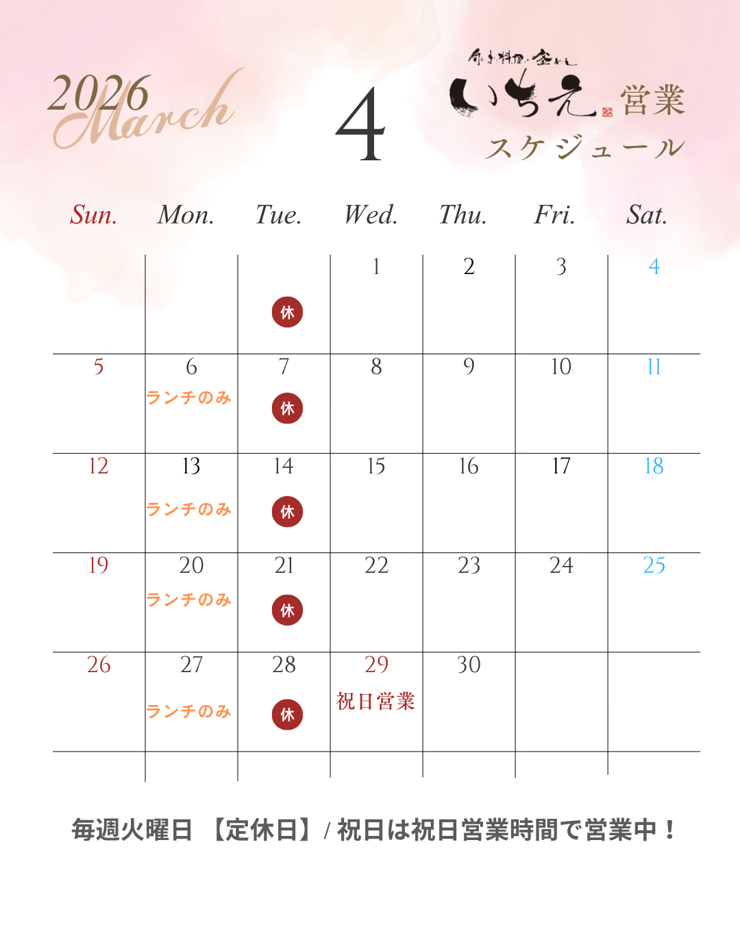 🗓️4月の営業日程