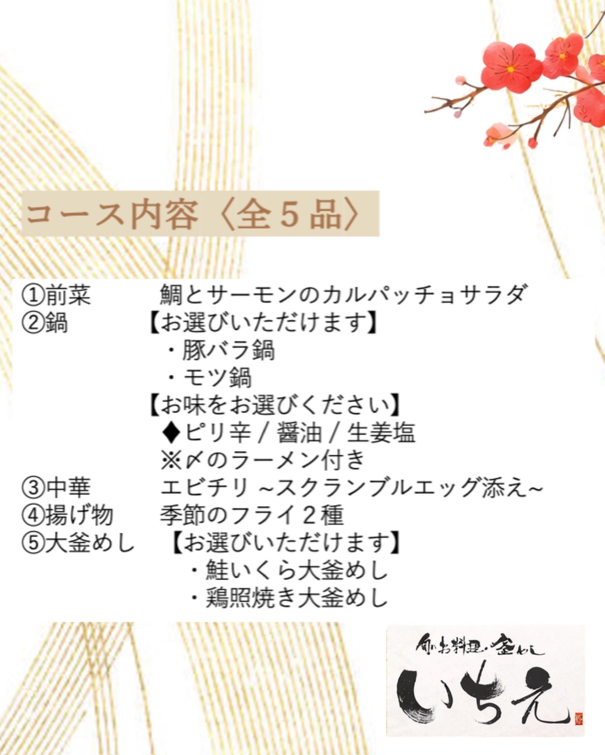 平素より”旬のお料理 釜めしいちえ”をご利用いただき誠にありがとうございます。