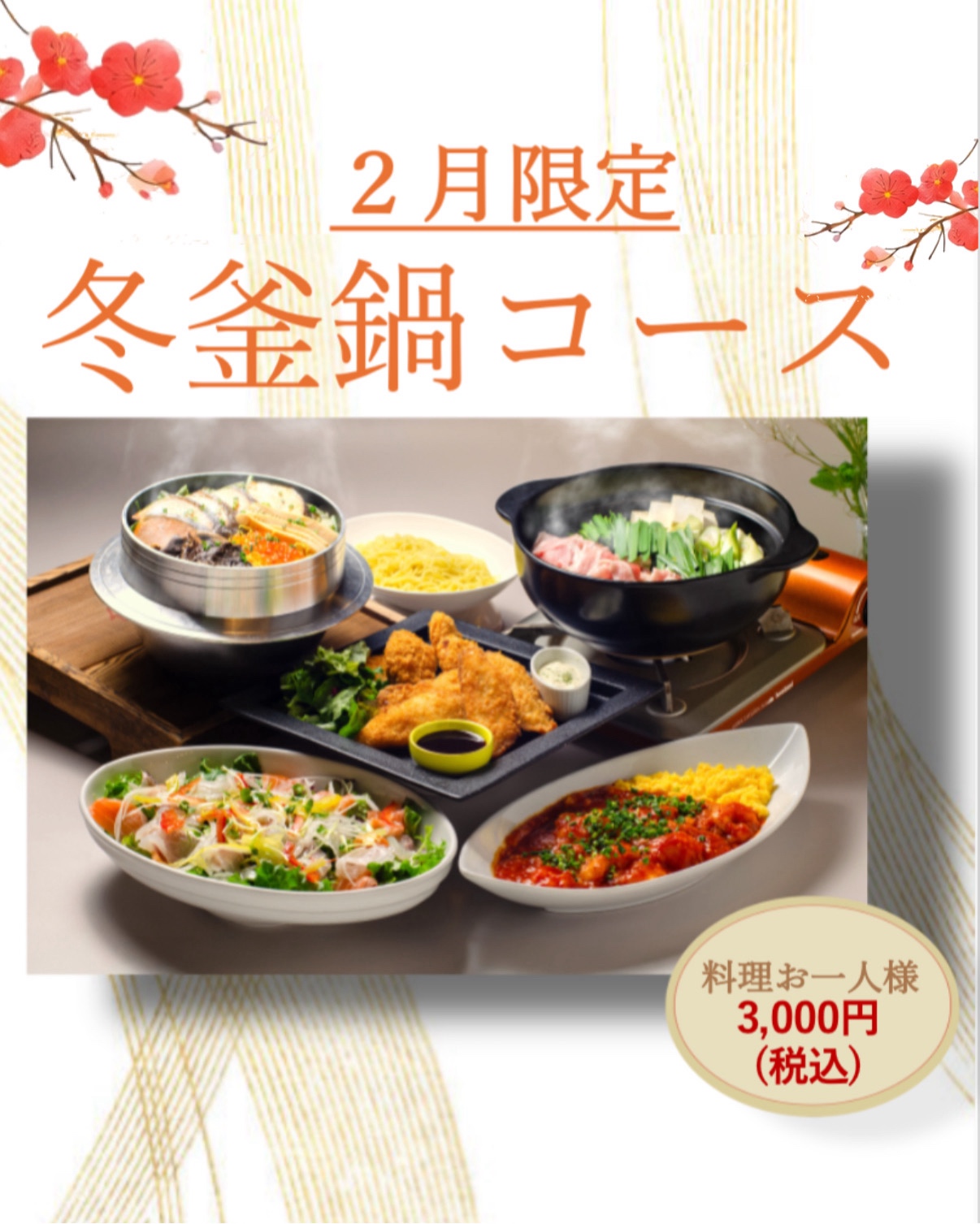 この度、2月限定 選べる贅沢【冬釜鍋コース】がスタートとなります!